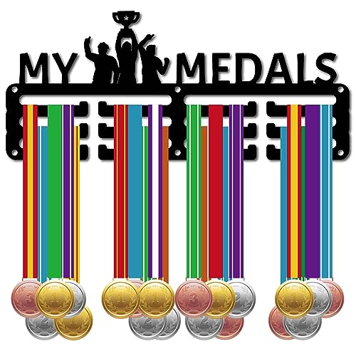 CREATCABIN Löpning medalj hängare visa sport medaljhållare över 60+ medaljer pris järnhållare ställning ram väggmonterad hängande för medaljör löpare gymnastik maraton idrottare gåva 40 x 15 cm