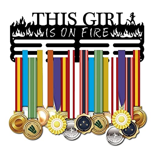 SUPERDANT This Girl is on Fire Medaljhållare löparmedaljer visa svarta järn väggmonterade krokar personlig medaljhållare för löpning medalj vägghängd present för löpning flicka kapacitet ca 10–15 kg