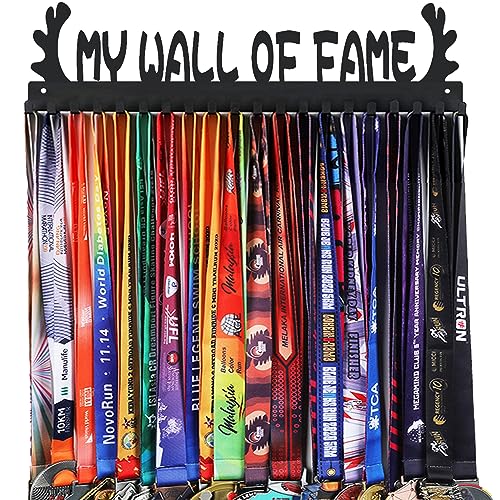 Goutoports medaljhållare Display Hanger Rack Frame for Sport Race Runner- My Wall of Fame - Robust svart stålmetall Över 60 medaljer Lätt att installera