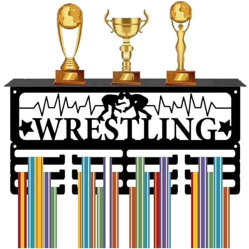 CREATCABIN brottning medaljhängare sport trofé hylla med 12 krokar för medaljer sport medaljhållare för väggmontering håll 60+ medaljer band organiseringsställ för kvinnor män utmärkelser race 40 x 20