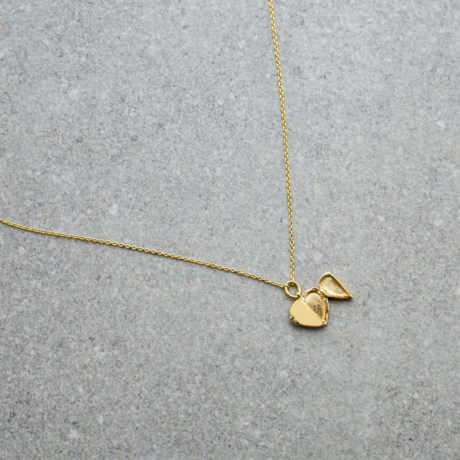 MicVivien Halsband med hänge i form av gyllene hjärta, rostfritt stål, medaljong för personliga bilder, minnen, foton, hänge med ordet Love/dubbelt hjärta/vanligt mönster, Guld Rostfritt stål