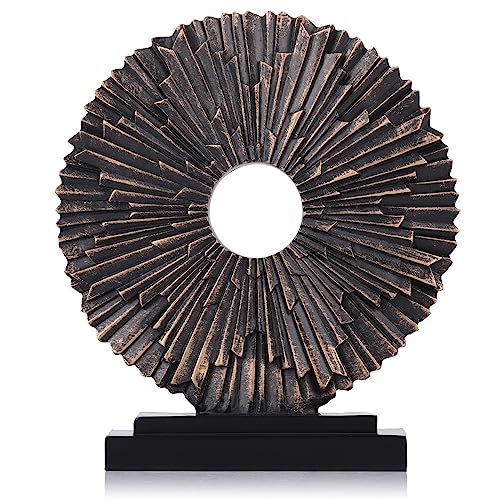 Guld heminredning skulptur, ovanför köksskåp dekor estetisk, vardagsrum dekor rund staty medaljong, mittdelar dekoration för bord – perfekt soffbord blått sovrum, kontor skrivbordsdekor