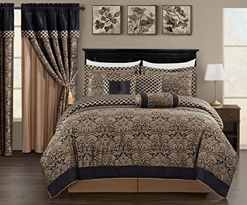Chezmoi Collection Seville 9-delad Jacquard Svart Guld Rödbrun Röd Medaljong Paisley Överdimensionerat Täcke Set, King 280 cm x 96
