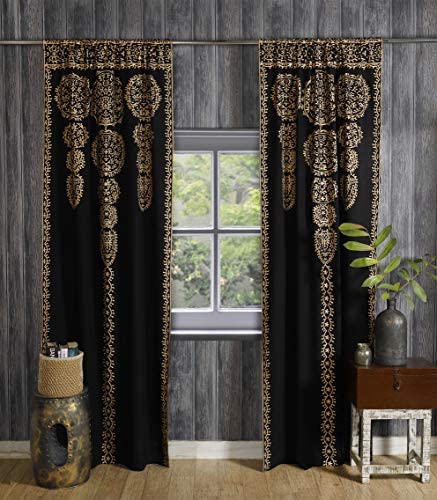 Labhanshi Svart guld marockansk medaljong blommig ombre mandala fönster gardiner gobeläng indisk drapering balkong rum dekor avdelare ren vägghängande