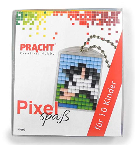 Pixel P90058-09501 roligt pysselset, hästar för 10 barn, med 10 medaljonger för pixling, enkelt plugin-system utan strykning och limning, perfekt för barns födelsedag, eftermiddag, skolor och barn