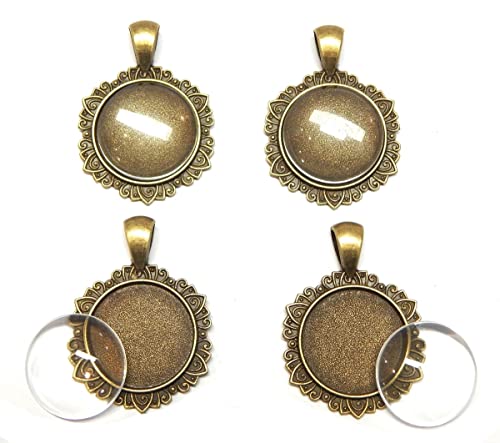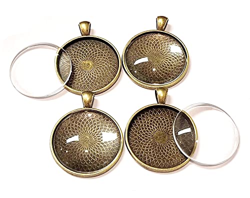 Perlin uppsättning med 4 medaljonger metall, hänge, fattning charm och 20 mm rund klar glaskabochon, bronsram superoptik, pysselset