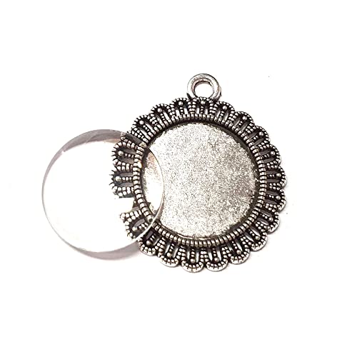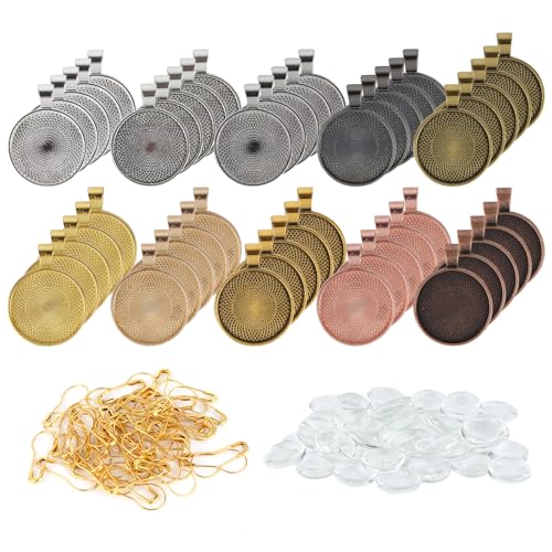 RVLZKCPG 50 stycken hängbrickor, cabochon-ämnen, rund hängsmycke, infattning med 25 mm glaskabochons i 10 färger, cabochon-set för gör-det-själv hantverk, halsband, nyckelknippa medaljonger
