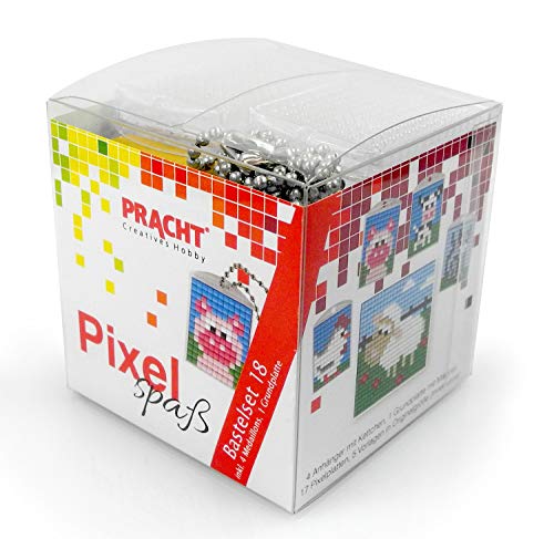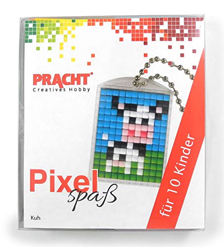 Pixel P90058-03501 roligt pysselset ko för 10 barn, med 10 medaljonger för pixling, enkelt plugin-system utan strykning och limning, perfekt för barns födelsedag, eftermiddag, skolor och barn