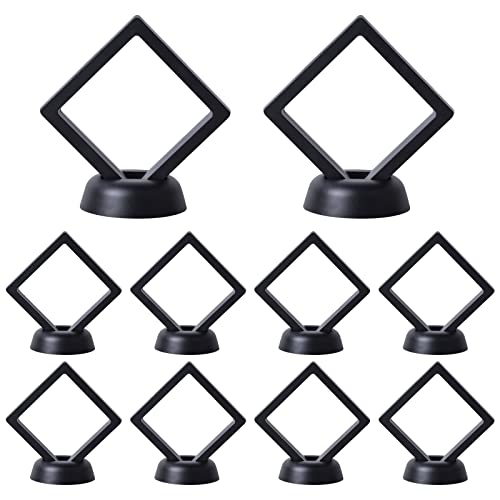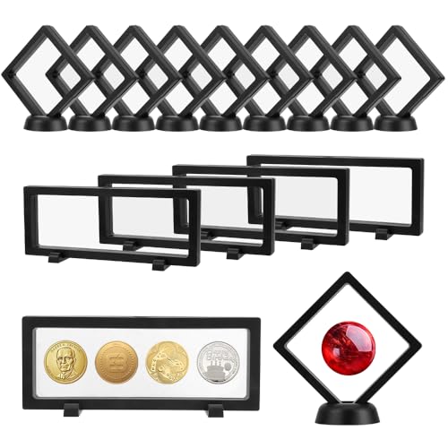 Pinsheng myntvitrin för medaljer 10 stycken 3D-flytande ramar med stativ, transparent flim, myntdisplay låda för utmaningsmynt, AA-medaljonger, chip, smycken, svart