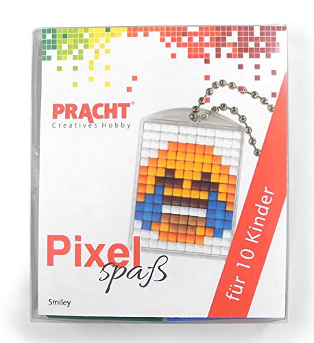 Pixel P90058-13501 roligt pysselset smiley för 10 barn, med 10 medaljonger för pixling, enkelt plugin-system utan strykning och limning, perfekt för barns födelsedag, eftermiddag, skolor och barn