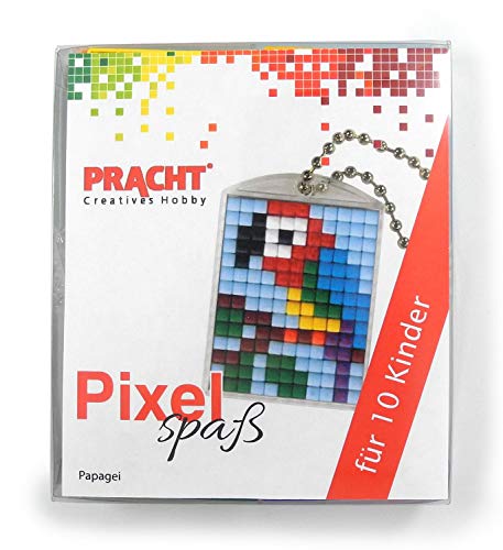 Pixel P90058-07501 roligt pysselset papegoja för 10 barn, med 10 medaljonger för pixling, enkelt plugin-system utan strykning och limning, perfekt för barns födelsedag, eftermiddag, skolor och barn