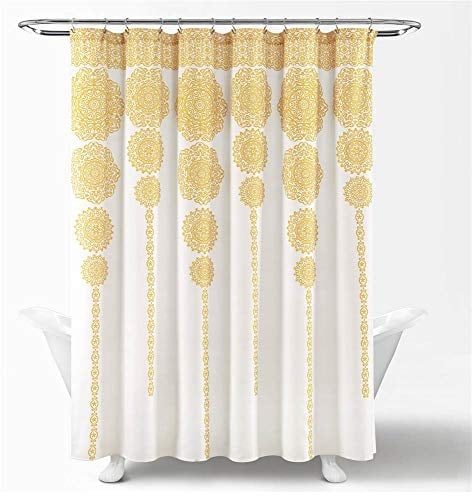 Lush Decor Duschdraperi med randiga medaljonger, tygmandala, bohemisk, damast tryckdesign, 183 x 183 cm, gul