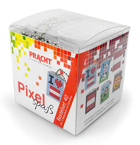 Pixel P90078-63501 roligt pysselset 40, för att designa 6 nyckelringar (medaljonger) för barn, enkelt plugin-system, utan strykning och limning, stenar av bioplast