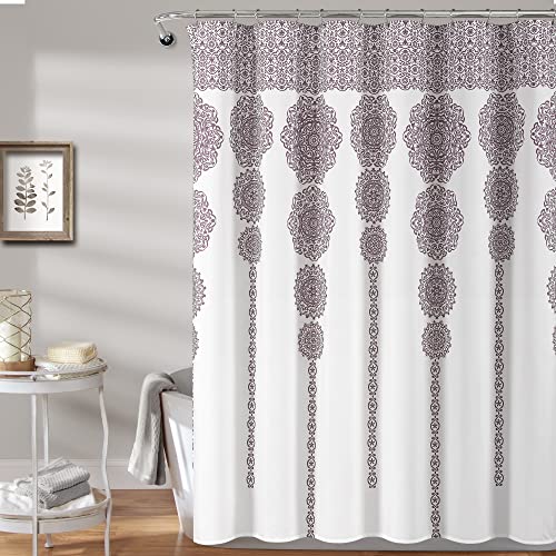 Lush Decor Duschdraperi med randiga medaljonger, tygmandala, bohemisk, damast tryckdesign, 183 x 183 cm, lila