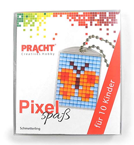 Pixel P90058-11501 roligt pysselset fjäril för 10 barn, 10 medaljonger för pixling, enkelt plugin-system utan strykning och limning, perfekt för barns födelsedag, eftermiddag, skolor och barn