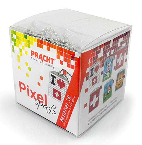Pixel P90070-63501 roligt pysselset 32, för att designa 6 nyckelringar (medaljonger) för barn, enkelt plugin-system, utan strykning och limning, stenar av bioplast
