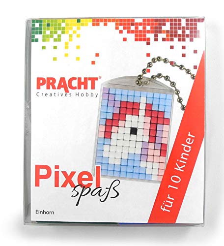 Pixel P90058-12501 roligt pysselset, enhörning för 10 barn, med 10 medaljonger för pixling, enkelt plugin-system utan strykning och limning, perfekt för barns födelsedag, eftermiddag, skolor och barn