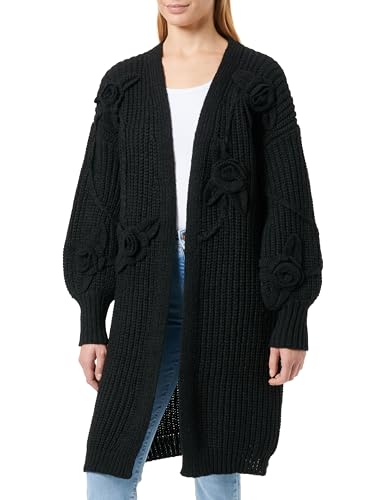faina Damer medellängd tredimensionell blomma virkad tröja dam kofta svart storlek XS/S, svart, XS