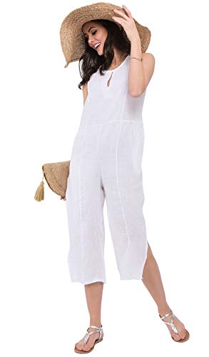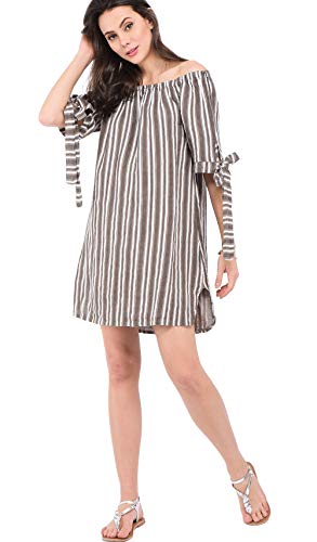 Bonateks, Flödande trapetsklänning med medellängd och halvärmar och fickor, 100% linne, De-storlek: 42 Us-storlek: XL, satin – tillverkad i Italien, Beige, 42