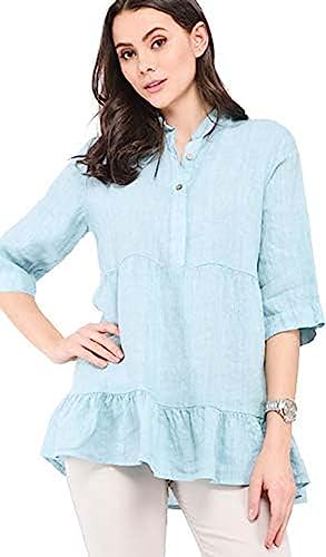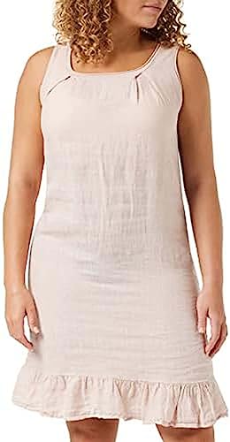 Bonateks, Volangklänning med medellängd, rund krage och veck framtill, 100% linne, De-storlek: 36 Us-storlek: S, satin – tillverkad i Italien, ROSA, 36