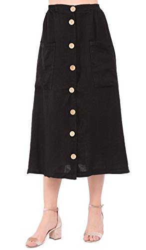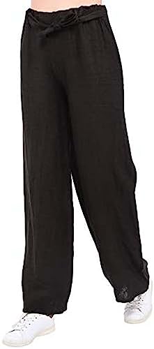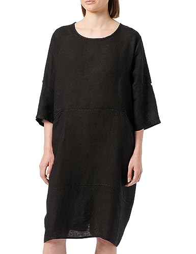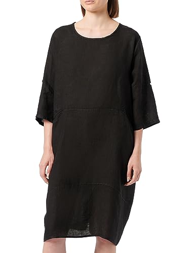 Bonateks, Flödande klänning med medellängd, rund krage, långa, påsydda ärmar och fickor, 100% linne, DE-storlek: 38 Us-storlek: L, svart – tillverkad i Italien, svart, 38