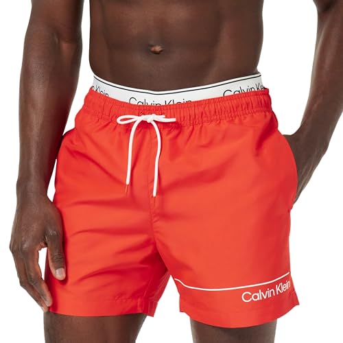 Calvin Klein män badbyxor medium dubbel medellängd, Röd (varm värme), S