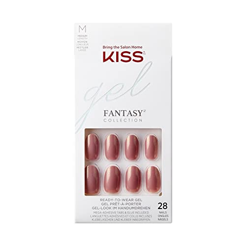 KISS Gel Fantasy Collection nagelmanikyrset, Brighter Than The Sun, medellängd ovala konstgjorda naglar, innehåller 28 konstgjorda naglar, nagellim, nagelfil och manikyrpinnar