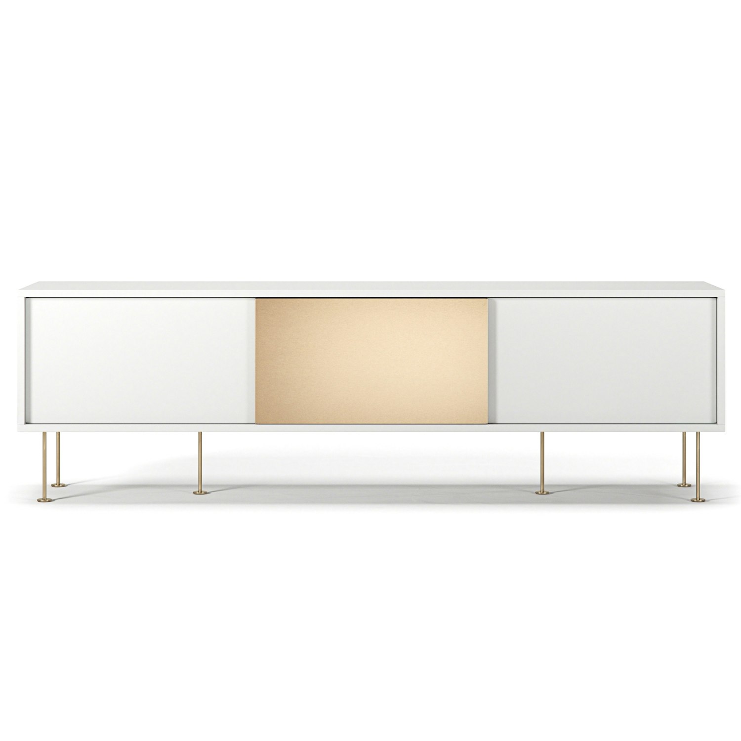 Vogue Mediabänk 1 Mässingsdörr Med Ben 180 cm, Vit / Mässing / Mässing