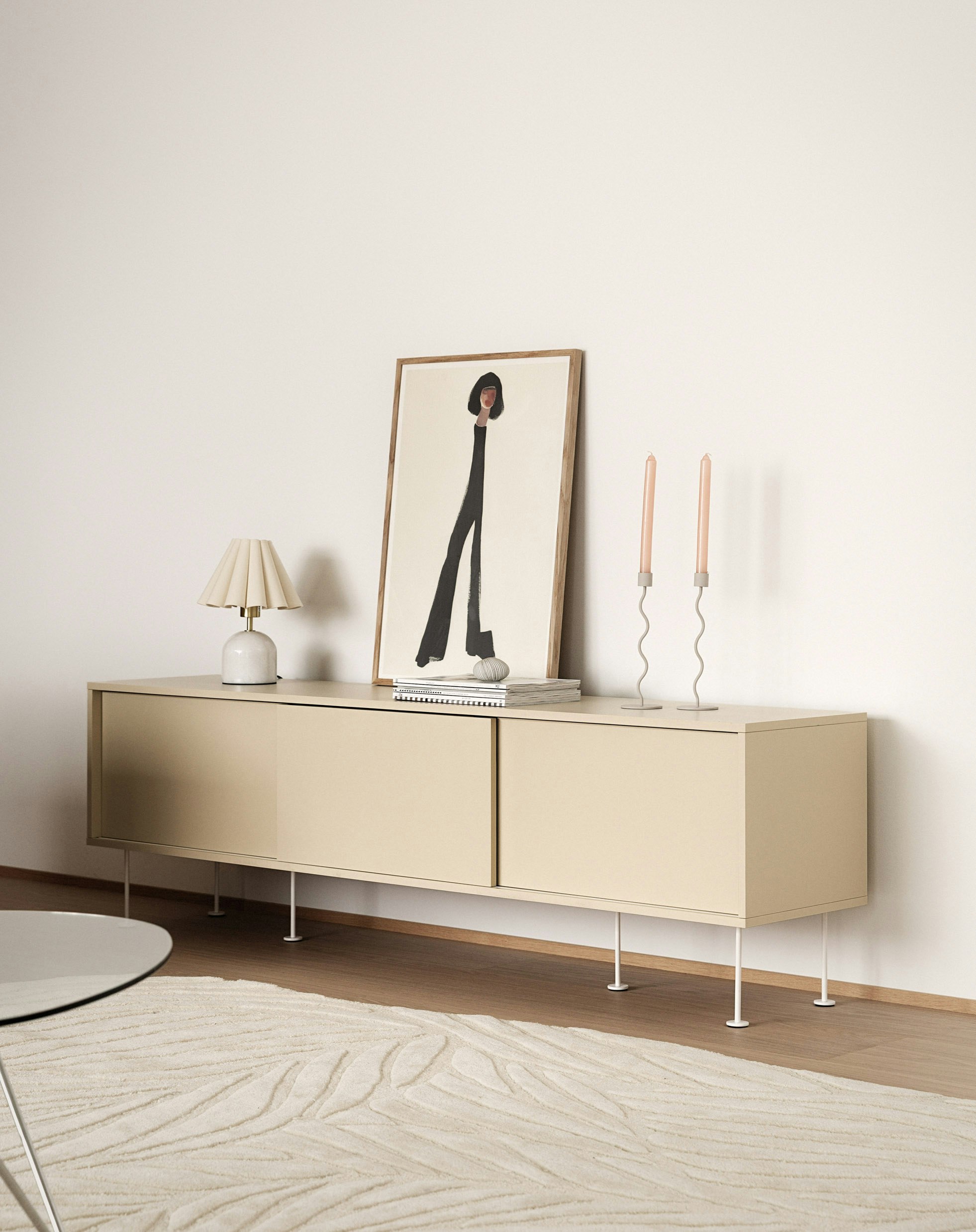 Vogue Mediabänk Med Ben 180 cm, Sand / Vit