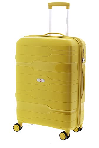 GLADIATOR Bionic Expanderbar Resväska, Hård & Svängbara hjul, Median, 65 cm, Gul, mediana, 65 cm, Expanderbar resväska och hårdhjul