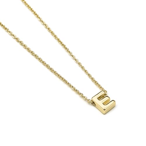 LUXENTER alfabetshalsband 18 karat guldfinish – bokstav E, median, metall, utan ädelsten, mediano, metall, utan ädelsten, Mediano, Metall, Utan ädelsten