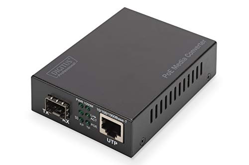 DIGITUS mediaomvandlare – SFP-port – Gbit Ethernet – RJ45/SFP 1000Base-LX – med PoE-injektor – svart