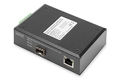 DIGITUS DIN-Rail mediaomvandlare – SFP-port – Gbit Ethernet – RJ45/SFP 1000Base-X – med PoE-injektor – svart