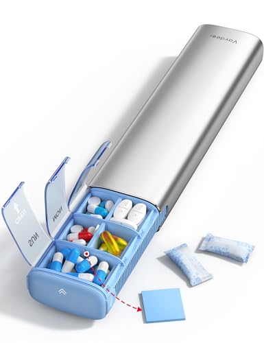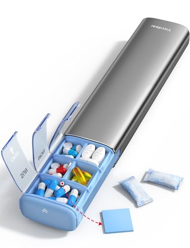 VAYDEER tablettlåda 7 dagar [torrsäker] [LFGB-certifierad] [ljusskyddad] [aluminium] resepillerlåda tablett organisatör för 2 × daglig medicinlåda, morgon och kväll silver