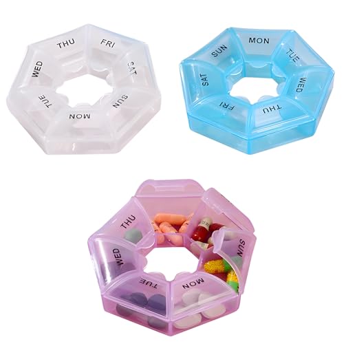 Pillerbox 7 dagar, 3 st. pillerlåda bärbar rund pillerlåda medicinlåda 7 dagar, hållbar minidispenser veckovis, små tabletter veckolåda för mediciner vitaminer