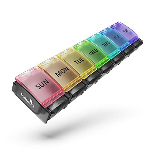 Fullicon Veckovis pillerlåda, 7 dagars tablettlådor för vitaminer och kosttillskott, lätt att öppna stor medicinlåda, bärbar medicinorganisatör för resor