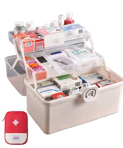 EURXLQ Vit Medicinlåda i 3 nivåer,34×19×22 cm Multifunktionell Förvaringslåda,Medicinskåp Med Förvaringsväska,Medicinskåp,verktygslåda,Aorteringslåda,Fiskeredskapslåda,Organiseringslåda