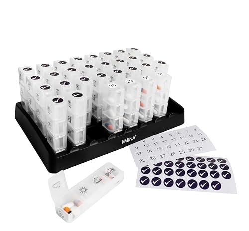 KMINA – tablett låda månad 31 dagar 4 fack, medicinlåda stor, tablettdispenser 1 månad, pillerask