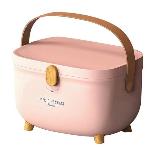 Chililon Husapotek, medicinlåda stor kapacitet, medicinförvaring med handtag och avtagbart fack, lämplig för förvaring av läkemedelsförvaring och hushållsartiklar (rosa)