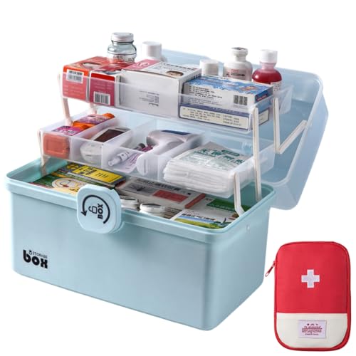 EURXLQ Blå Medicinlåda i 3 nivåer,34×19×22 cmMultifunktionell Förvaringslåda,Medicinskåp Med Förvaringsväska,Medicinskåp,verktygslåda,Aorteringslåda,Fiskeredskapslåda,Organiseringslåda