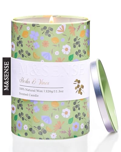 M&SENSE Doftljus med Örter & Klätterväxter - Ekologiskt Sojavax 320g (Bränntid 60h) - Aromaterapi för Avslappning/Meditation, Present till Män/Kvinnor | Spa, Vårhelg