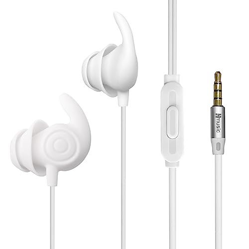 Hmusic Sömhörlurar, brusisolering 3,5 mm, trådade, lätta mjuka silikonöronsnäckor, mikrofon för sömnlöshet, sidosov, snarkning, flygresor, yoga, avslappning, meditation (vit)