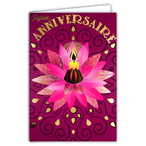 65-1407 Grattis på födelsedagskort för dam flicka hand Lotus blomma ljus och guld glänsande, ljus avslappning välbefinnande zen meditation med vitt kuvert format 17,5 x 12 cm AFIE