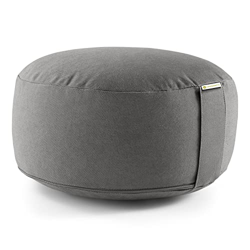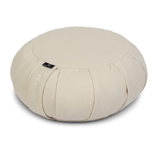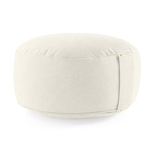 Yoga Studio EU rund Zafu meditationskudde | ekologisk bomull | bovete skrov | avtagbart tvättbart skydd | bärhandtag (Ecru)