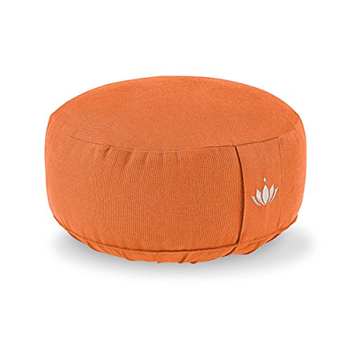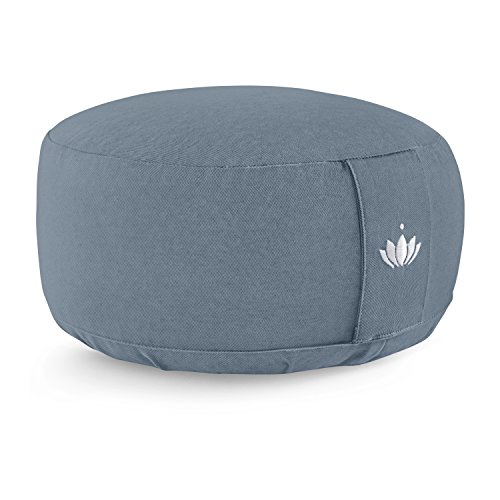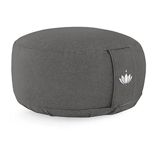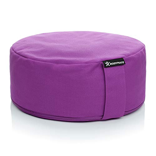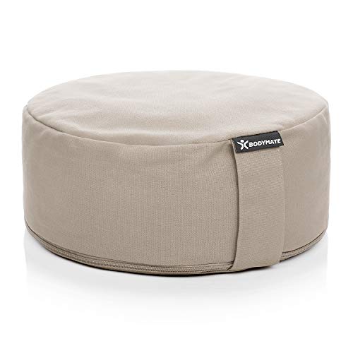 BODYMATE Rund Yogakudde 31 cm i diameter, 13 cm hög med Fyllning av Boveteskal – Maskintvättbart Överdrag av 100% Extra Tjock Bomull – Meditationskudde – Sittdyna