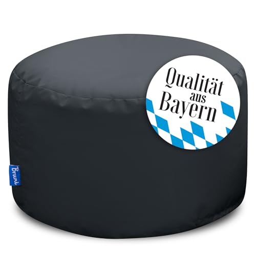 Bruni Pouf Sittpall L i svart – rund sittpuff, inomhus och utomhus som fotpall, yogasittkudde, meditationskudde, tillverkad i Tyskland