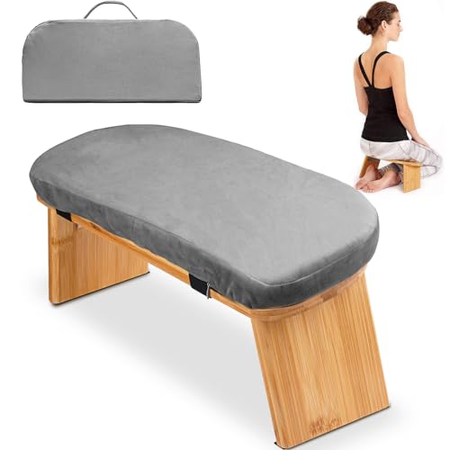 Hihealer meditationsbänk, vikbar bambu, ergonomisk meditationspall med bekväm kudde, knä eller sittande, perfekt för meditation och bön, unika gåvor för kvinnor, mamma