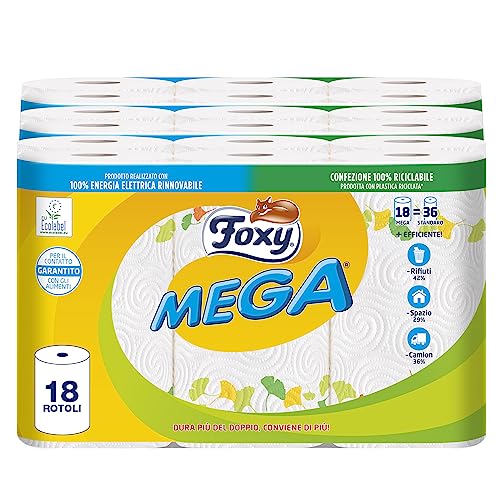 Foxy Mega | Långvarig torktumlare 18 rullar | 95 tårar per rulle | Dekorerad| PEFC-certifiering |100% Förnybar el| Återvinningsbar förpackning tillverkad med återvunnen plast