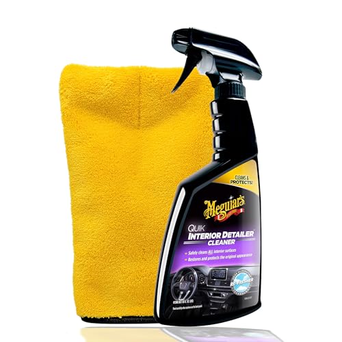 Rengöringsset för bil | Meguiar's Quik Interior Detailer interiör + detaljhandelshandske | rengör och skyddar plast och läder med fräsch doft