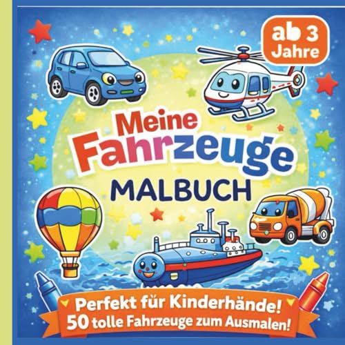Mein Fahrzeuge Malbuch für Kinder ab 3 Jahren Auto, Flugzeuge, Schiffe und vieles mehr